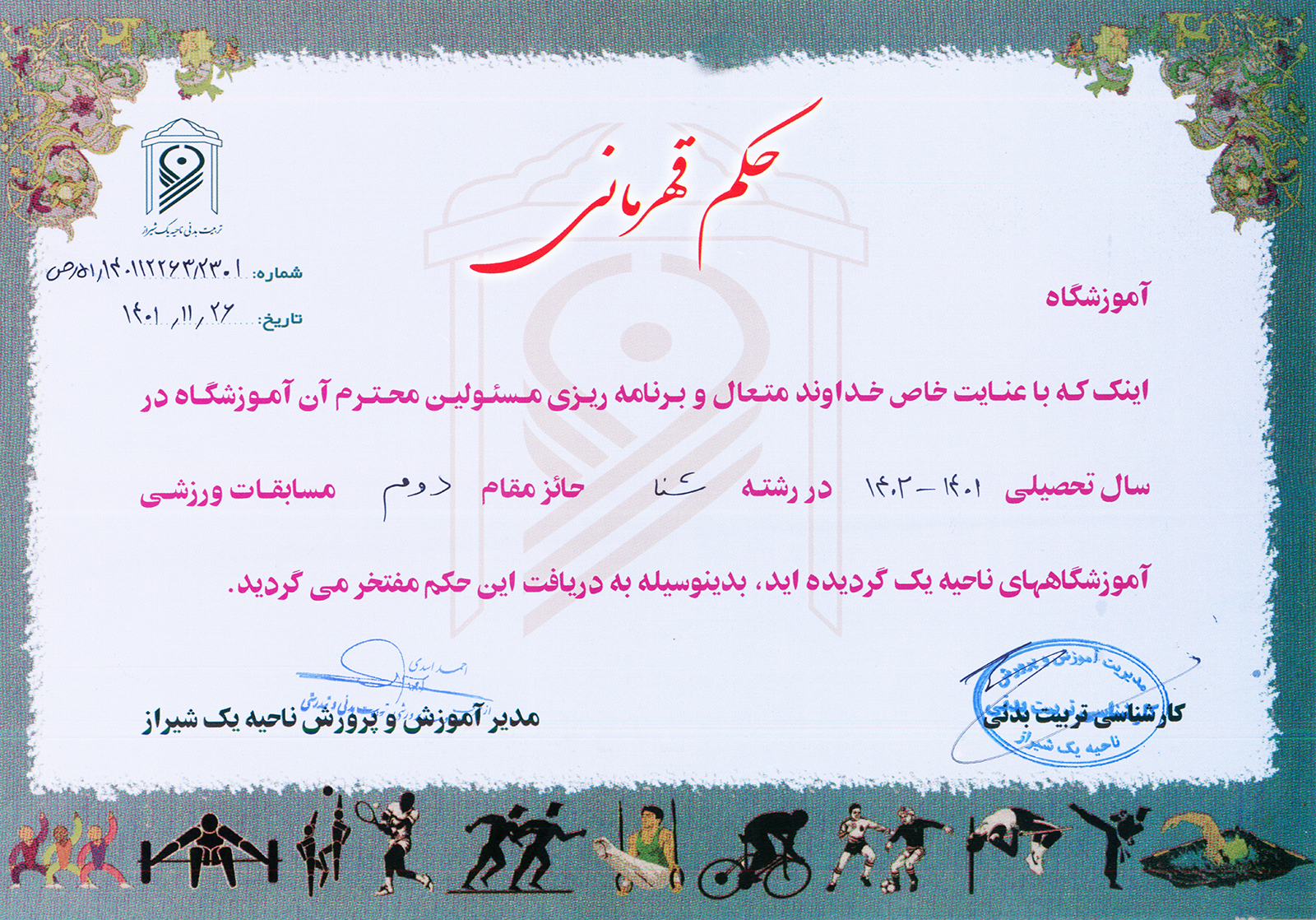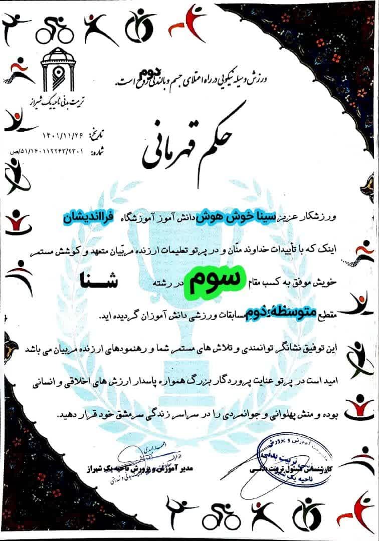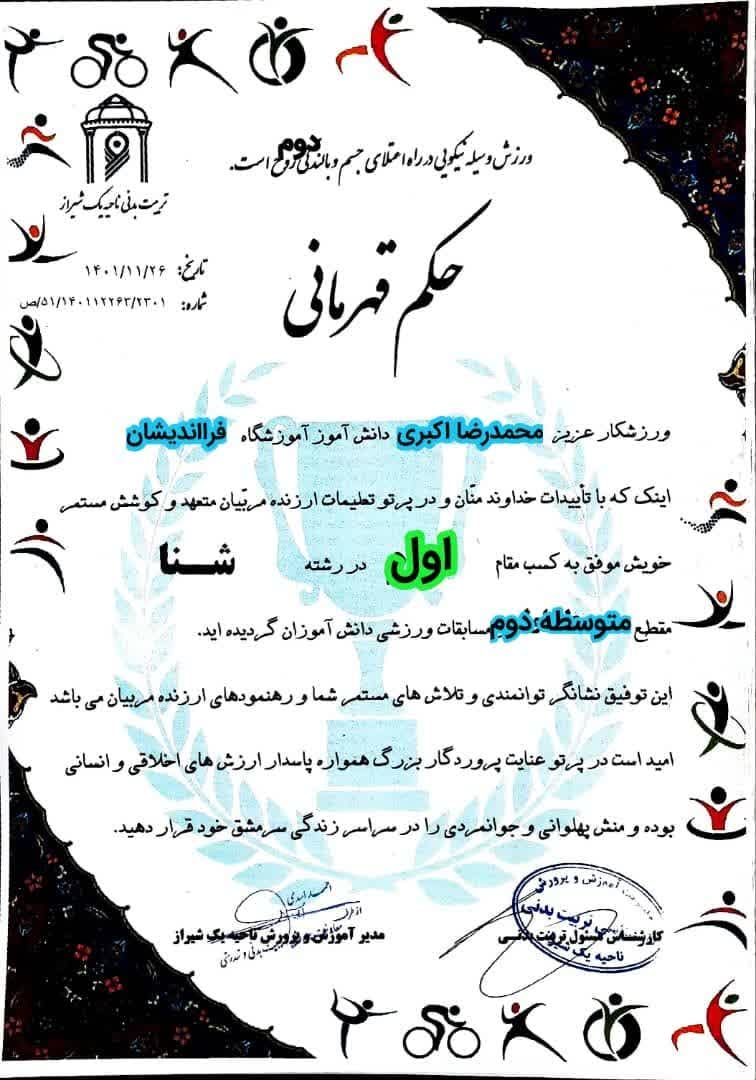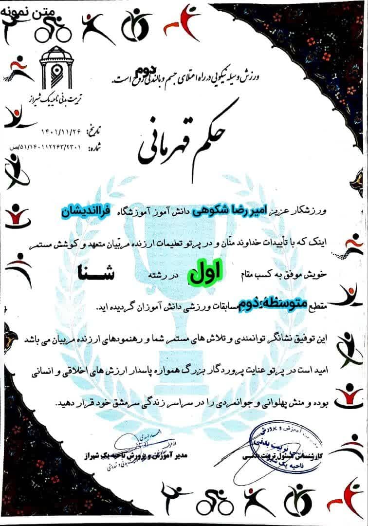 مقام دوم ناحیه 1 شیراز