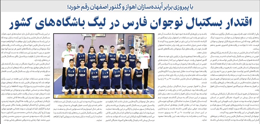 صعود تیم بسکتبال شهردادری شیراز به جمع هشت تیم برتر کشور